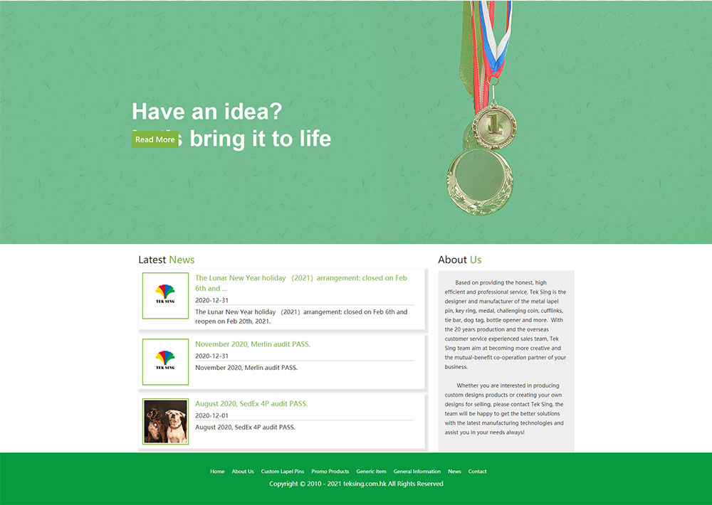 Based on providing the honest, high efficient and professional service, Tek Sing is the designer and manufacturer of the metal lapel pins, key rings, medals, challenging coins, cufflinks, tie bar, dog tag, bottle opener and more. With the 20 years production and the overseas customer service experienced sales team, Tek Sing team aim at becoming more creative and the mutual-benefit co-operation partner of your business.